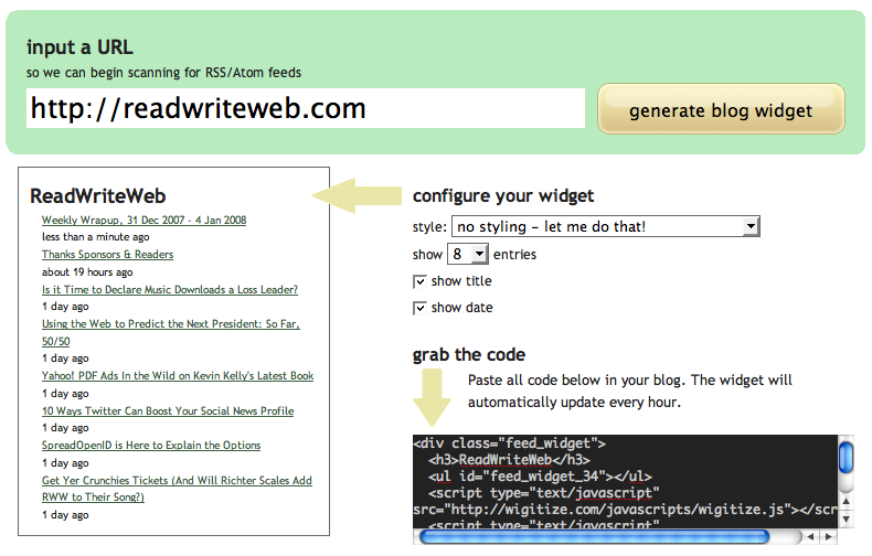 So wouldn’t it be cool if there was a web service that allowed you to convert any RSS/Atom feed into a embeddable widget? I’m sure some of you will suggest similar services now :]