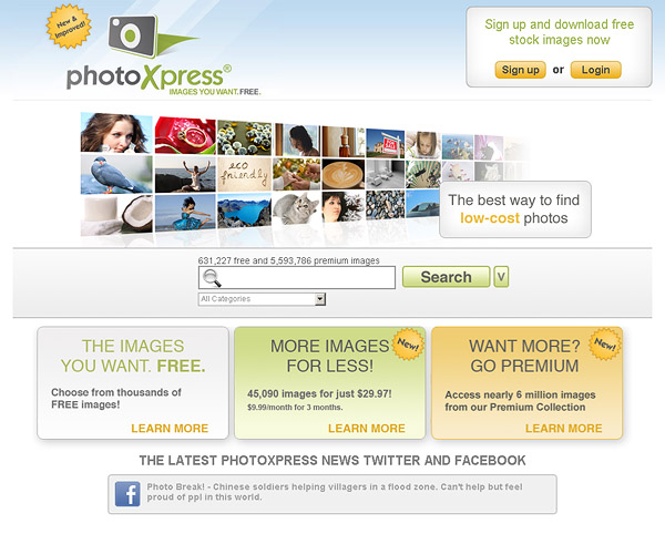 It’s a site with a huge collection of stock photos, either free or for sale. You can download for free 1 photo per day if you sign up, 5 photos per day if you join PhotoXpress on Facebook and 10 photos per day if you offer your personal information. It could be a continuing resource if you agree to these terms!